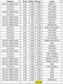 Origin: Belgium Selection: Allowed QTY: 155MT(Approx) Sizes: 0.42mm to 3.19mm Width: 750mm to 1734mm Price : On Bid . If you are interested Kindly submit your firm bid with destination port.