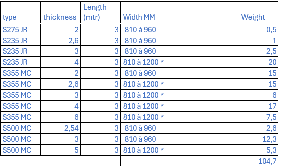 OFFERS.... Steel Flat Rolled Products June 4, 2024 Email WhatsApp Origin: Europe Material: 2nd Choice Selection: Not Allowed QTY: 104MT Sizes: 2.0mm to 5.00mm Width: 800mm wider Length: 3000mm wider Price : USD 600/- PMT CFR Kindly submit your firm bid with destination port. Previous Post Offer 5189: Hot Rolled Sheets, Pickled Sheets Ex Europe Next Post Offer 5191: GI Steel Coils Stock Ex Arcelor